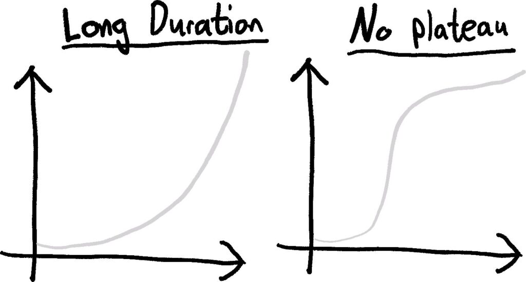 Note: A steep learning curve can be okay if: 1) The curve continues beyond a few months, making it difficult for others to catch upon 2) the steep learning curve does not end in a plateau after a short amount of time.