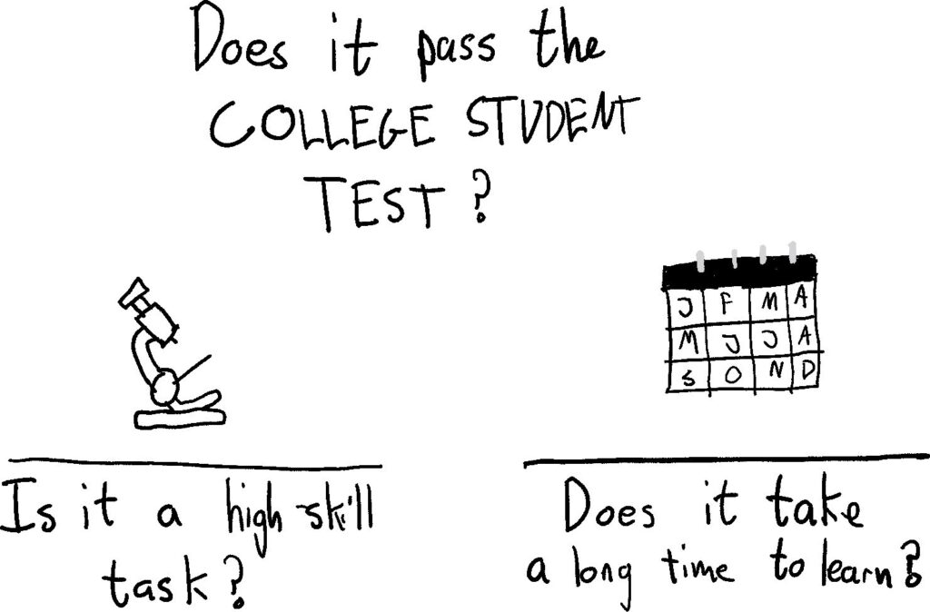 There are two ways in which your task can fail the college student test: It can be 1) Easy to perform (low-skill) or 2) Easy to learn (low time investment).